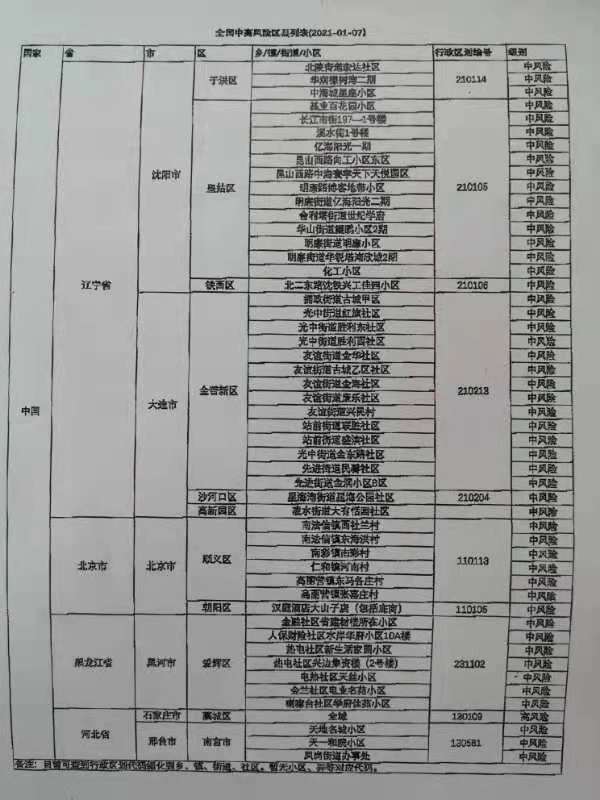 转发“关于推送全国新冠肺炎疫情中高风险地区的函”(2021年1月6日)